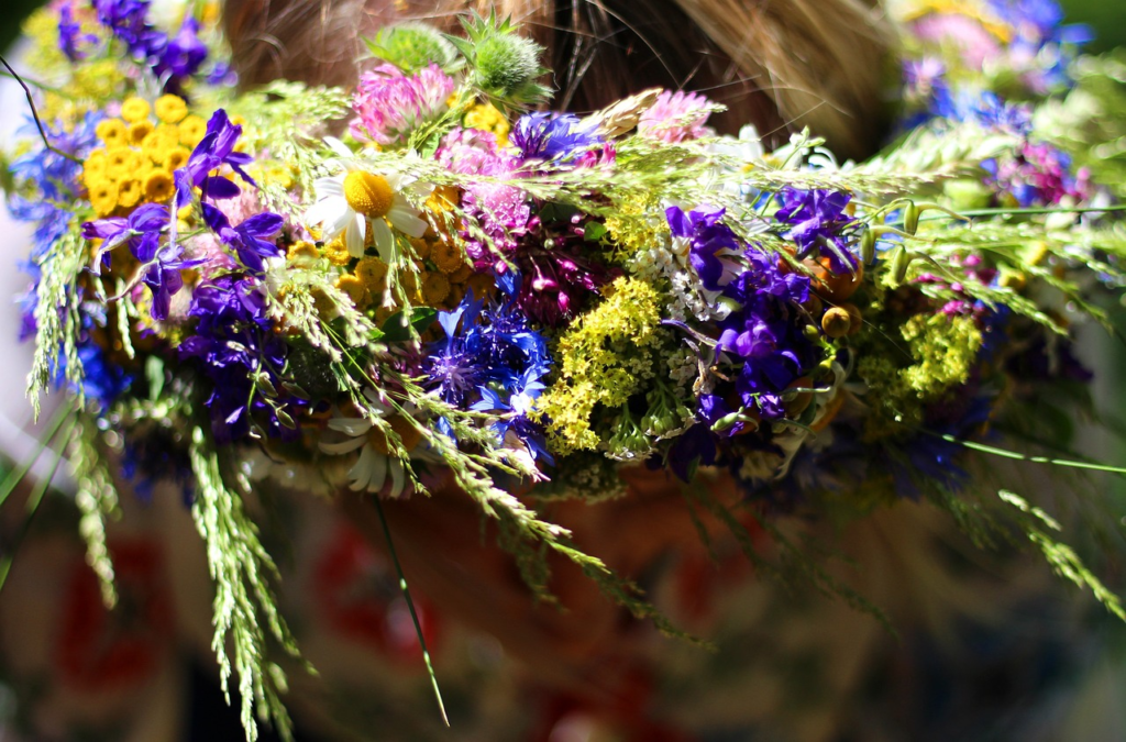 Możesz zrobić dla sobie wianek do noszenia na głowie, do zawieszenia w roli dekoracji albo po prostu do rzucenia na wodę. Do jego zrobienia użyj kwitnących teraz kwiatów i ziół. Możesz też oglądać przez wykonany wianek wschodzące słońce.