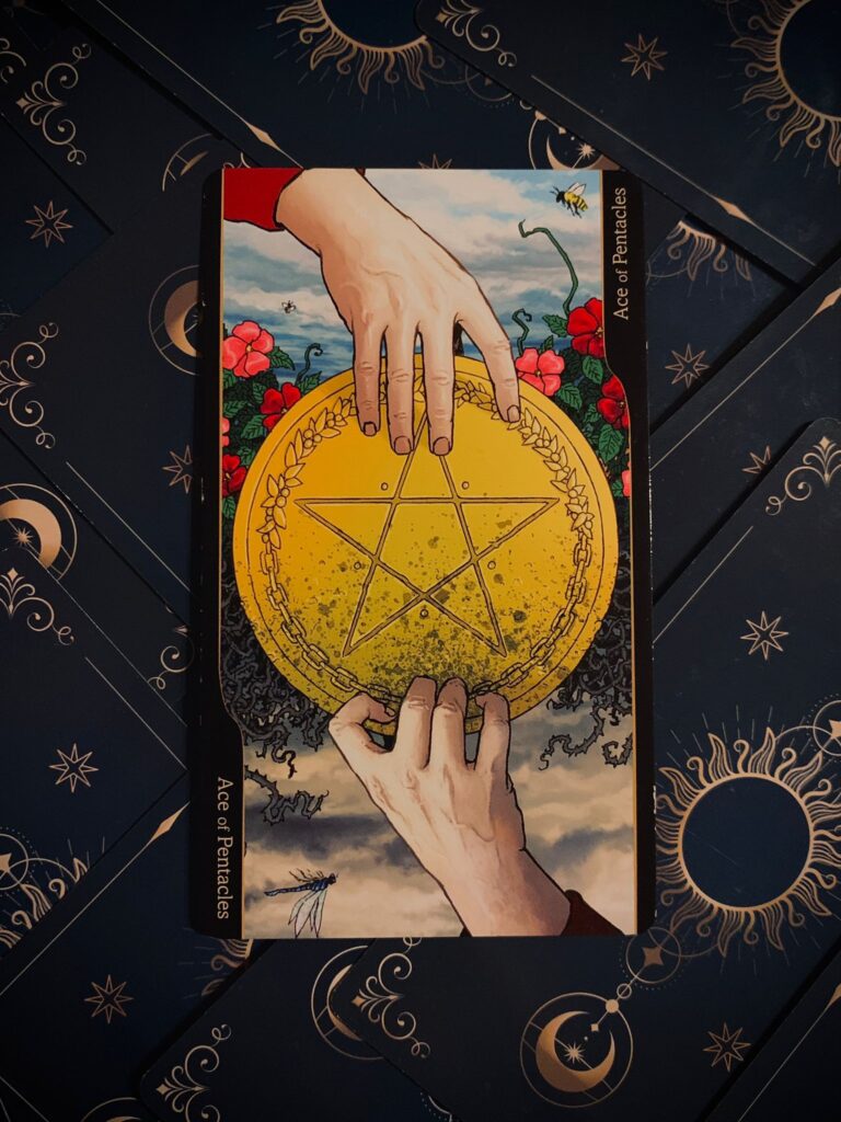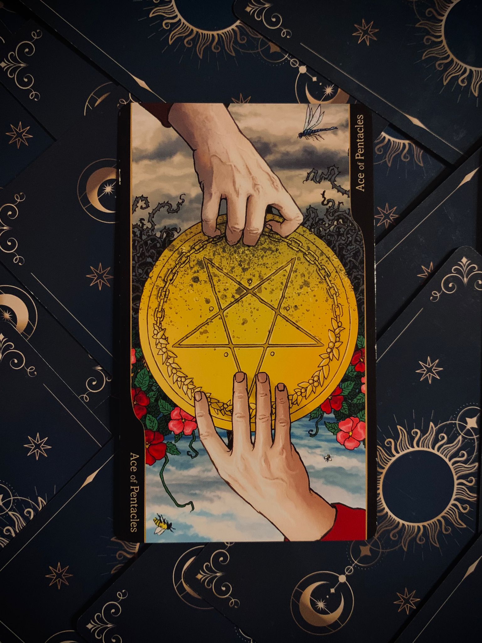 As Denarów pojawia się dzisiaj by zaoferować Nam w swojej narracji energię ziemską. Nieco inną niż tą, z którą prowadził Nas przez ostatnie dni ognisty Strzelec w kartach Umiarkowania i Rycerza Różdżek. As ten znany również jako As Pentakli, symbolizuje początek, nowe możliwości oraz wszelkie materialne aspekty życia. Jest to karta pełna obietnic, zachęcająca do działania i inwestowania swojej energii w projekty o realnych rezultatach.