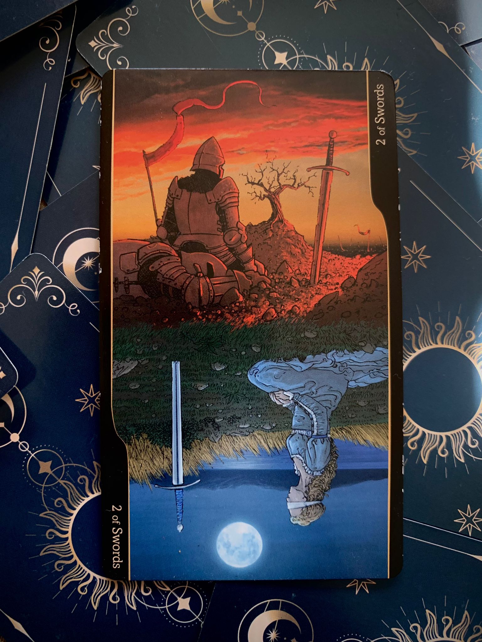 Jednak Dwójka Mieczy nie ogranicza się tylko do relacji z innymi. To także zaproszenie do głębszej introspekcji. Zachęca Nas do zwrócenia uwagi na nasze myśli i emocje oraz do znalezienia balansu wewnętrznego. Być może istnieją sprzeczności w naszym wnętrzu, które utrudniają Nam osiągnięcie pełnej harmonii. Teraz jest czas na wyjaśnienie tych sprzeczności i znalezienie sposobu na ich rozwiązanie.