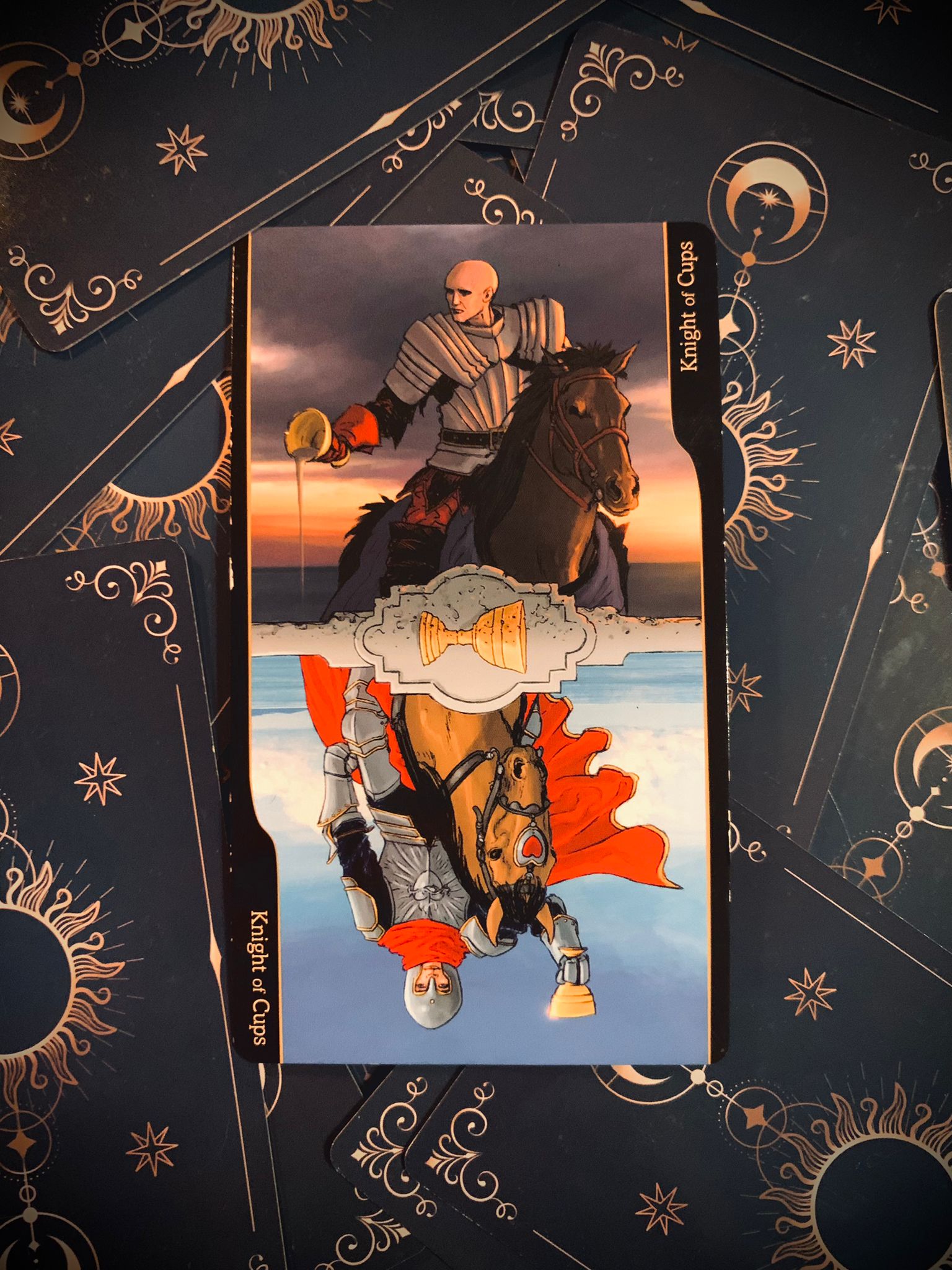 Współgra z nami energię Skorpiona, symbolizującego transformację i odkrywanie głębokich tajemnic. Dzięki temu wpływowi, Rycerz Kielichów zachęca nas do spojrzenia w głąb naszych dusz i odkrycia ukrytych pragnień oraz lęków. To czas, byśmy wyruszyli w podróż ku głębszemu zrozumieniu siebie i innych.